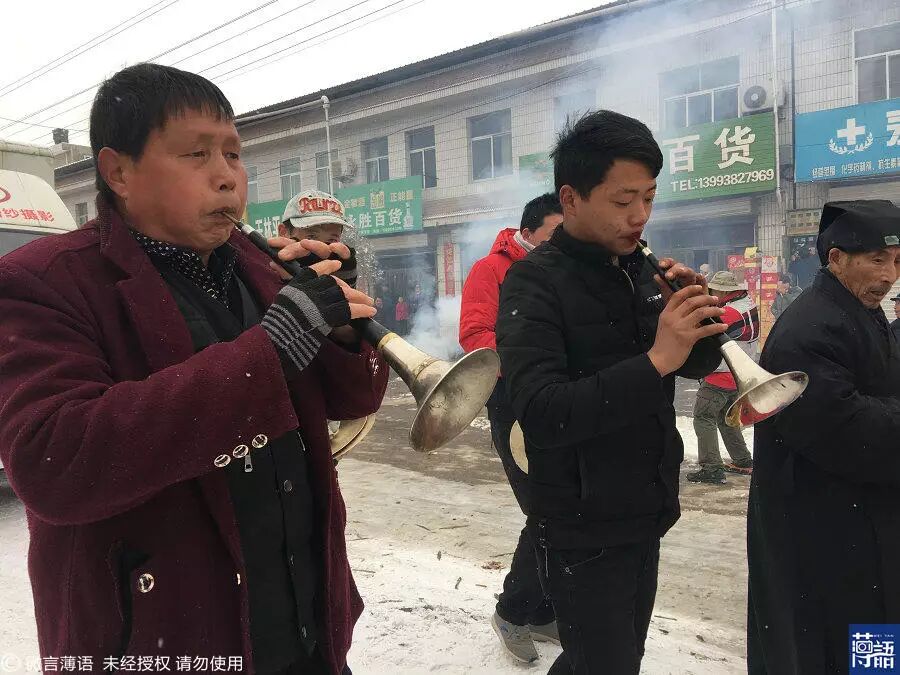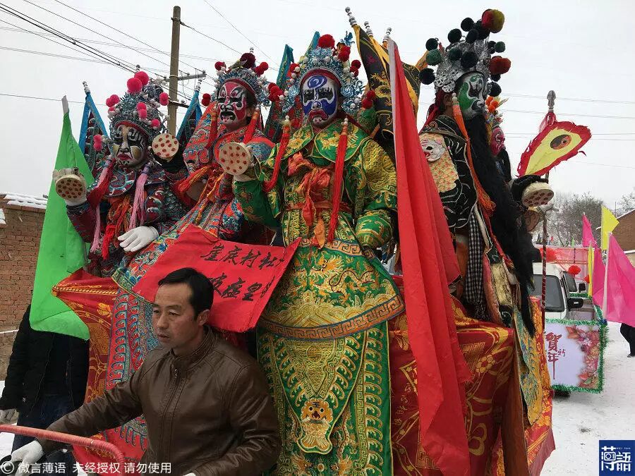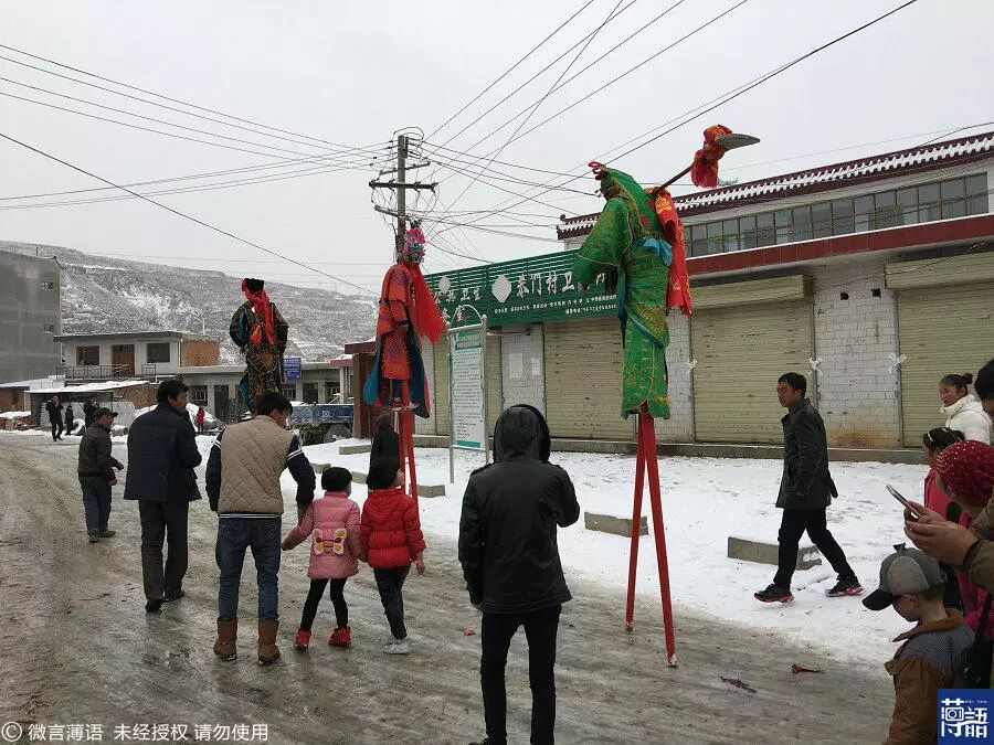 虽然下起了大雪,村民依然在等着看,帮他们拍照,因为演完这一场后,他们就要离开家乡去打工了。