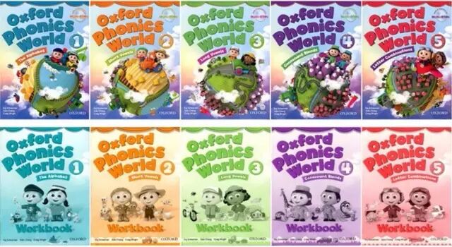 本次推荐的Oxford Phonics World 牛津自然拼读教材10本套装,包括教材5本,练习册5本,送教师用书1本。每册教材包含8个教学单元(每单元8页)、4个复习单元、故事、歌曲、游戏以及学生单词卡。