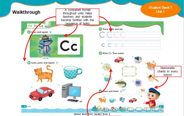 1. 每本教材包含8个教学单元(每单元8页)、4个复习单元、故事、歌曲、游戏以及学生单词卡。