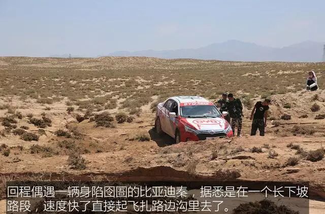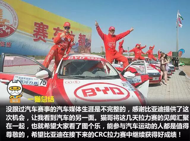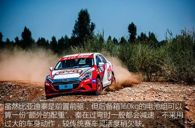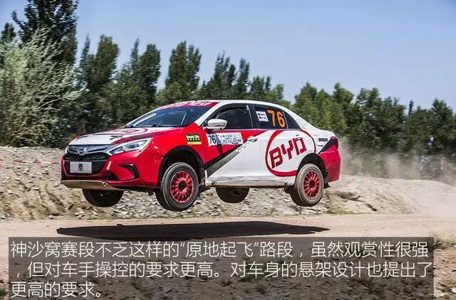 张掖站CRC比赛中,仅比亚迪秦一款混动组别赛车,比亚迪的要求就是保证完赛,检验在高强度拉力赛中,混动系统是否能承受其压力。谁说新能源车就一定同汽车赛事无缘的?在上午的神沙窝赛段中,8辆比亚迪秦全部完赛,车辆的性能与车手的技术值得肯定。