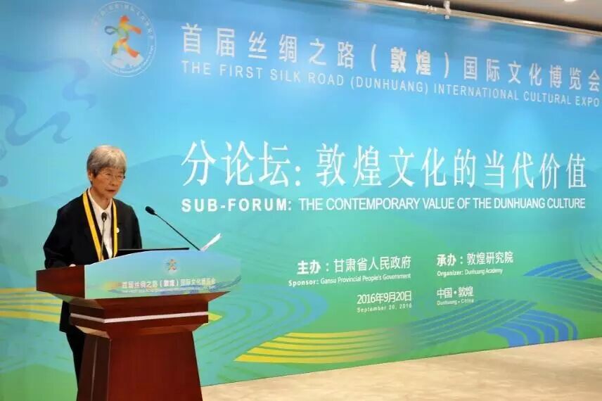 ▲ 敦煌研究院名誉院长樊锦诗在敦煌文化的当代价值分论坛上作交流 杨阳 摄