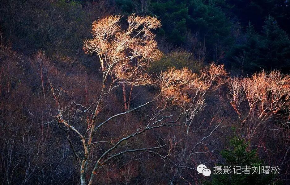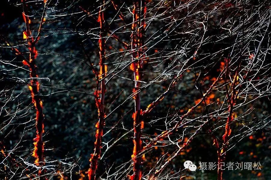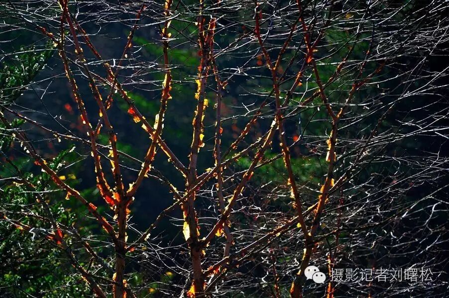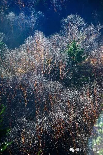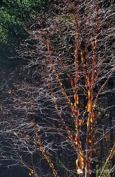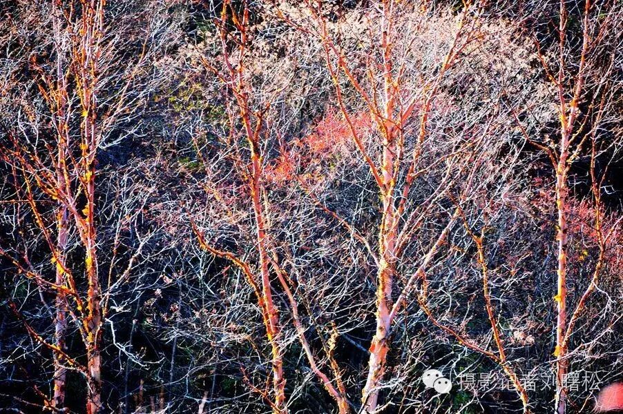 无数次秋天走进神农架,无数次在这红桦树边流连,我对于神农架,最爱的是金丝猴,其次就是这满山的红桦树,一片片大山上,密密麻麻都是,及其普通,又最为美丽,因为普通,一般人无福消受红桦树那些惊艳的瞬间。看,逆光下,斑驳的红树皮灿烂如花,白色的枝条宛若浮云在山间,这等秋色,极致极美。