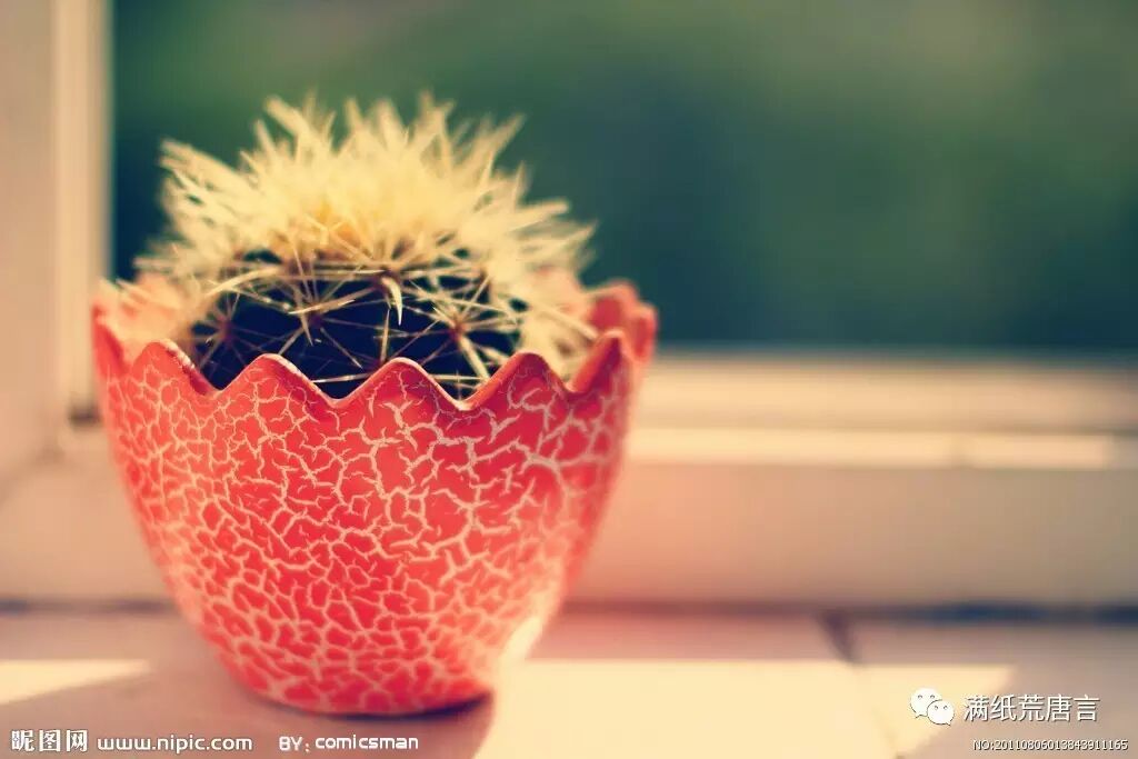 生命,生命是什么?生命大概就是这样的吧!在年轻的时候都事先有一种埋伏,等到几年几十年后才能寻到一种答案,只是在这不经意间一晃就是一生。人这一辈子啊!这样想着,我忽然觉得自己就是一盆仙人球,浑身长满密密的小刺,无端地落寞地被弃置在都市的窗台上,只是在怎样的时候我又能被何人抱走,又该开出一朵怎样的花蕾呢?
