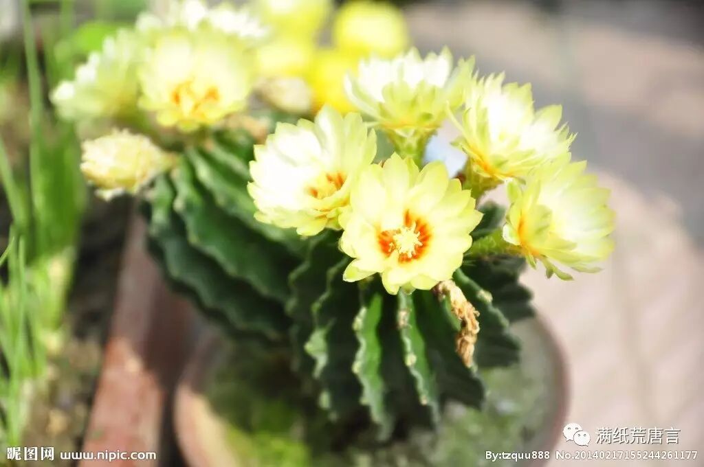抱来就抱来吧,想想它也倒怪可怜的,它不像别的花那样过分地讲究水分和养分。记得一开始还是在我乡下的时候从一个奶牛场带来的。那时孩子还小,乡下打牛奶不怎么方便,幸亏学校农场附近有一个奶牛场,于是每到下午放学后我的第一件事就是给女儿去打奶。就是在那个奶牛场,我见到了这个浑身长满疙瘩的刺球,于是在征得女主人同意后随意扳下两个,把它插在了花盆里,到现在已有六七年了吧。期间搬过一次家,上楼的时候不小心将根弄得脱落了,也就那么随手轻轻一摁,硬是将它摁到花盆里,不想后来竟开花了。