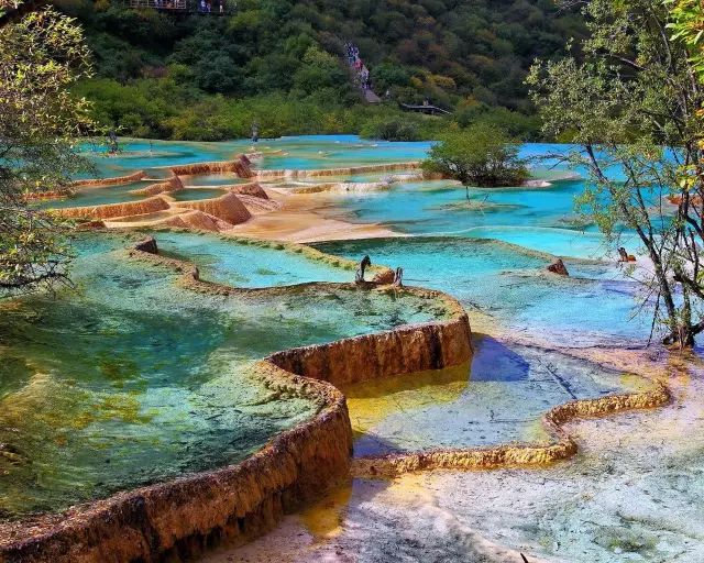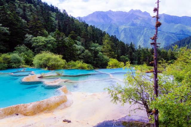 黄龙风景区以彩池、雪山、峡谷、森林“四绝”著称于世,是中国唯一的保护完好的高原湿地。