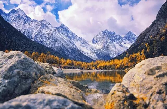 毕棚沟地处四姑娘山北麓,沟内以冰川、雪山、草甸为主。进入景区后一路都会有雪山相伴,且会有多处红叶观赏点。