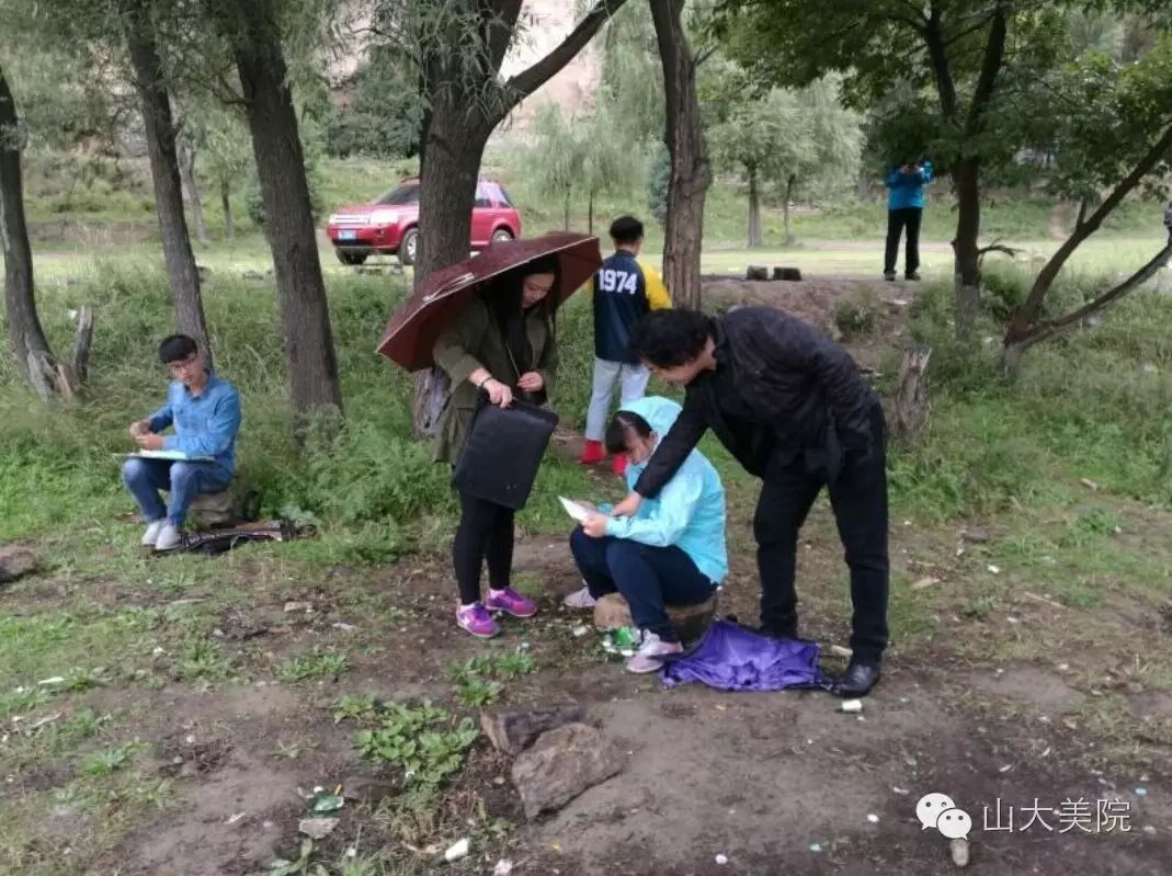 回顾几周写生路程,除了同学们潜心艺术创作的热情外,还有学院领导几赴实践教学写生基地的关怀。美术学院党委书记赵建伟、副院长王志俊与学院教学秘书等相关负责人一行,分别于2016年9月6日和9月8日,赴忻州市岢岚县和晋中市寿阳县看望在那里写生的师生们。