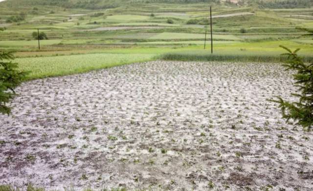 6月29日下午约17时开始,岷县全境多地又遭遇罕见冰雹袭击,部分房屋瓦片被打烂,地上铺了一层厚厚的冰雹,预计农作物受灾严重,全县受灾面积广。