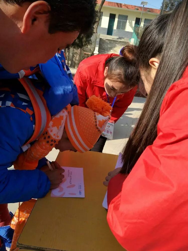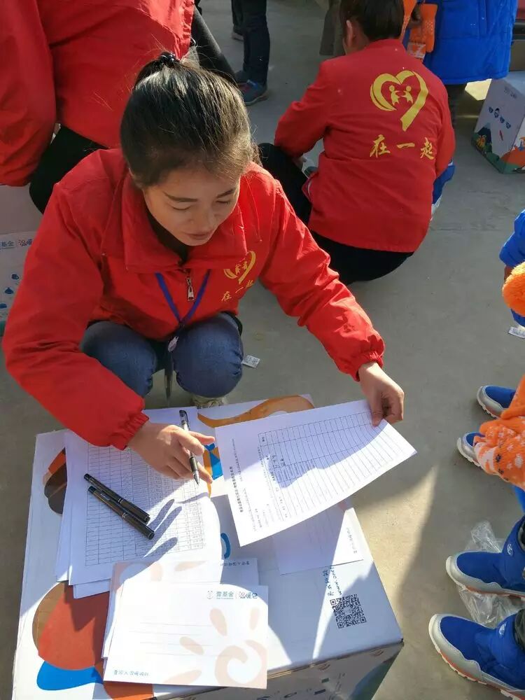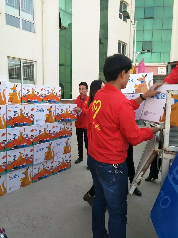 天气虽然有点寒冷,但志愿者为了孩子们心爱的礼物,干的热火朝天。