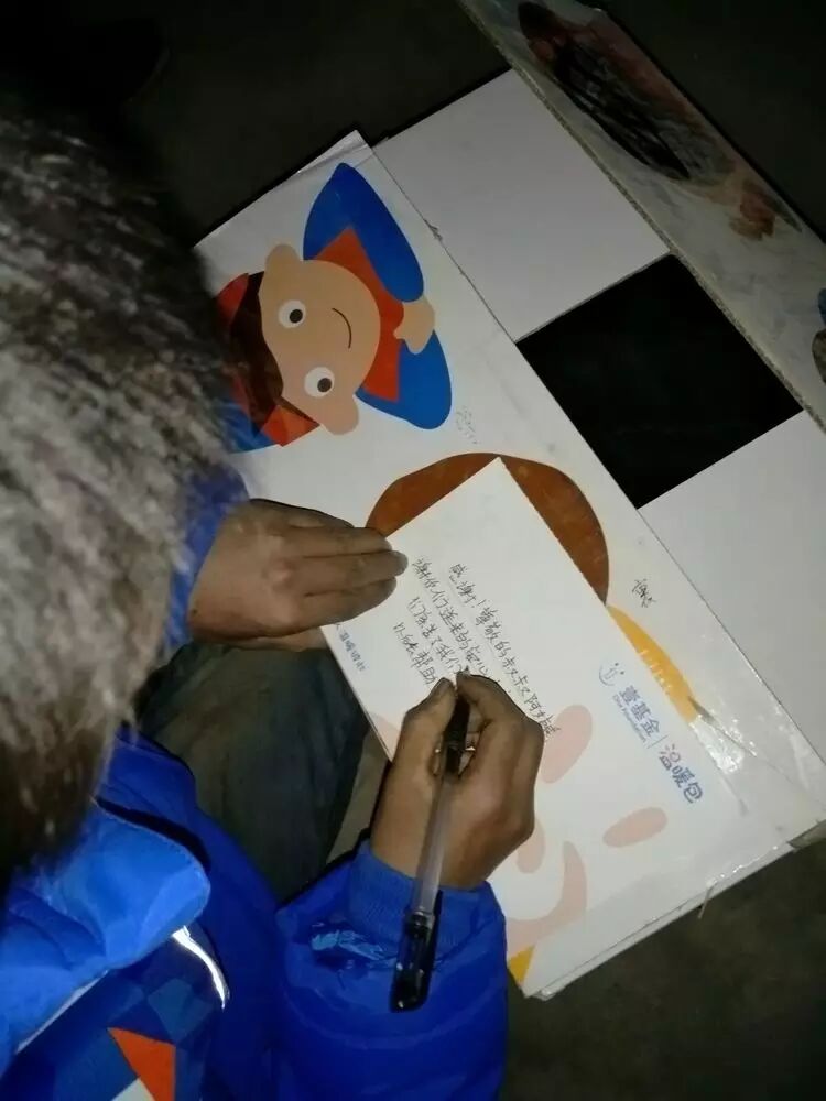 受助孩子在写感谢信!