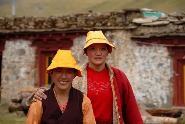 首先有必要对藏族尼僧的诸多称谓作简要介绍,尼僧即出家女性,在藏语中有许多称谓,诸如“增玛”(btsun-ma),意即“尊者女”;“格玛”(dge-ma),意即“善女”;或又称作“觉姆”(jo-mo),原意为“佛母”、“后妃”、“贵妇”,后沿用为出家女性之称谓;或称作“玛觉”(ma-jo),此乃“阿妈觉姆”之简称,其中“阿玛”一词意为“母亲”;或称作“阿尼”或“阿尼觉姆”(A-ne-jo-mo)。“阿尼”,意即“姨母、姑母”等等,这些称谓是对出家女性的一种尊称,它体现了藏民族对出家女性的敬重。