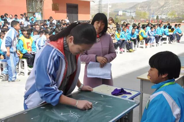 在学校四好广场,汉字听写大赛紧张热烈、扣人心弦。