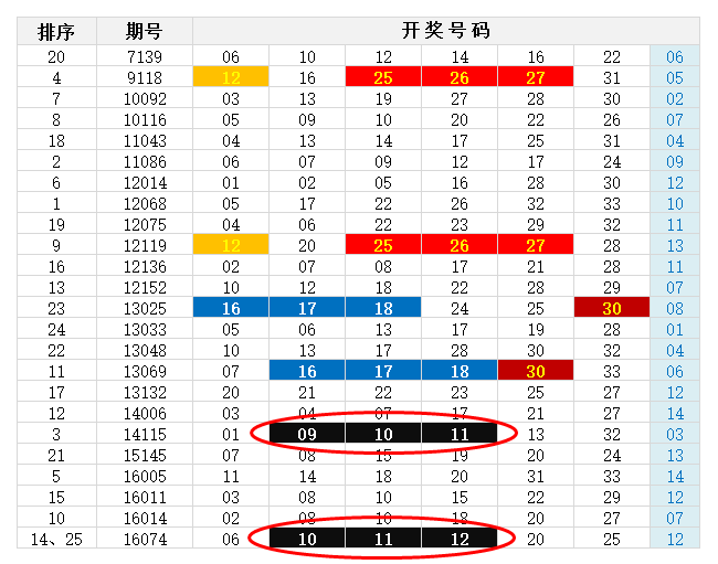 2009年118期12 16 25 26 27 31 + 05,为三连号25 26 27;