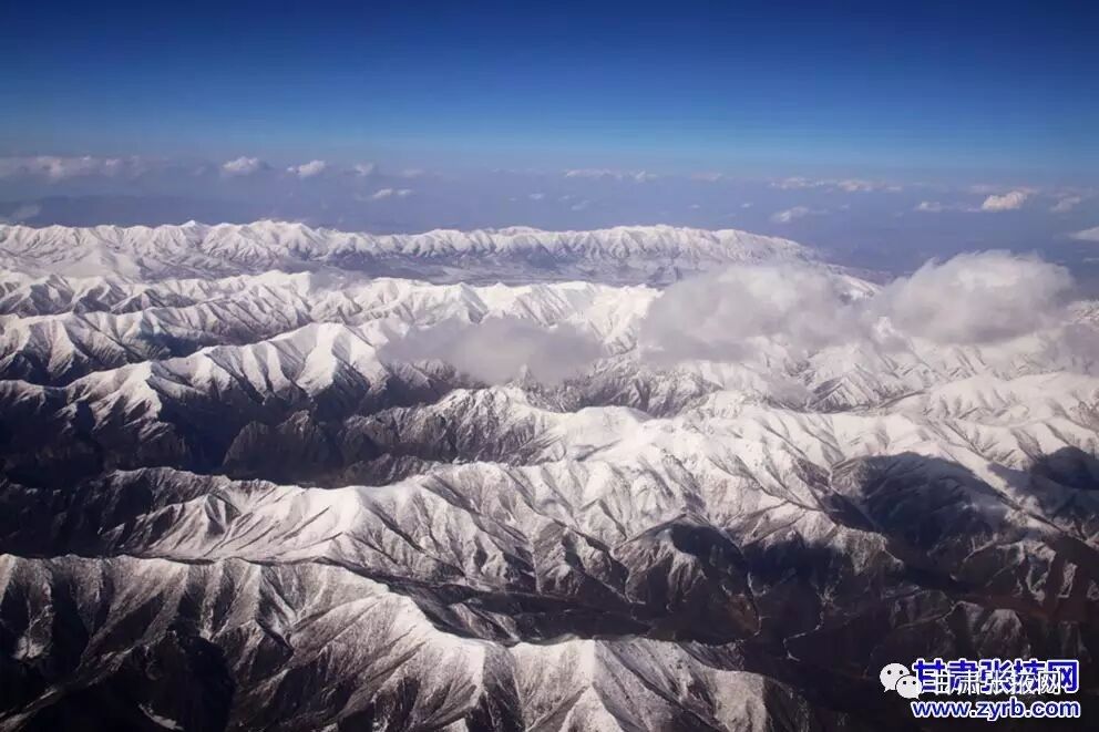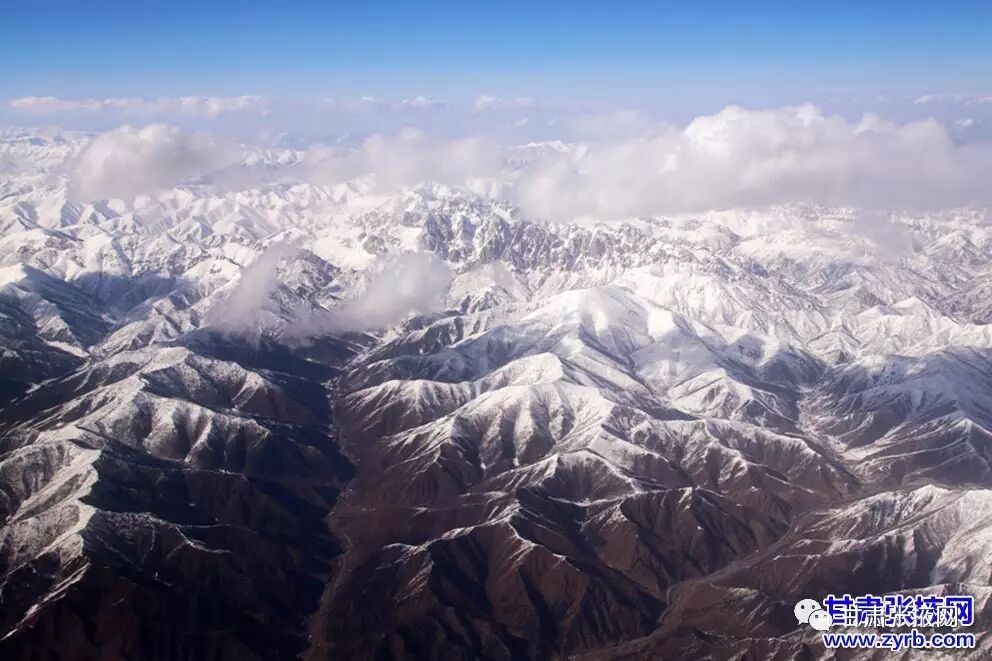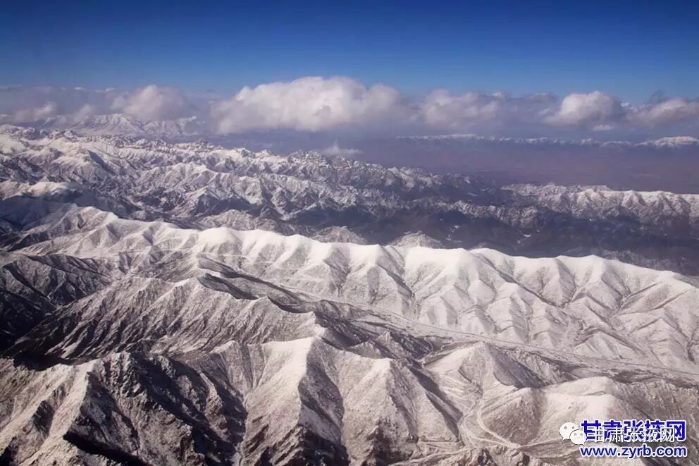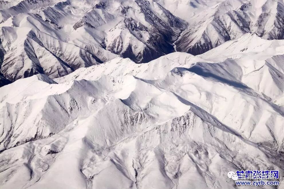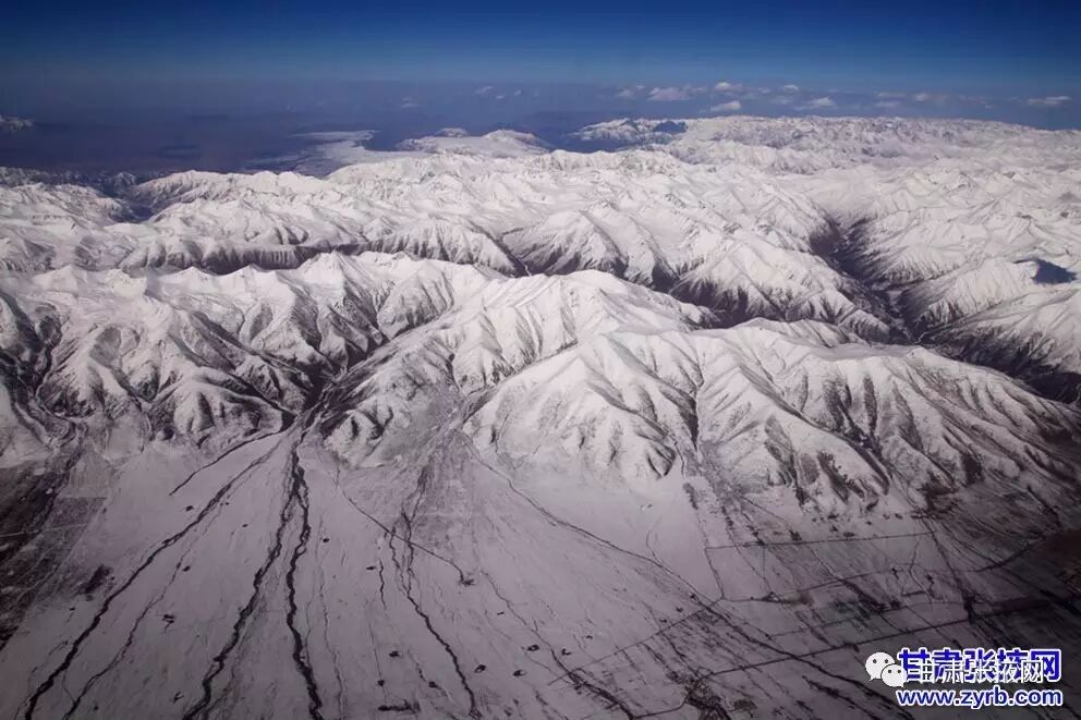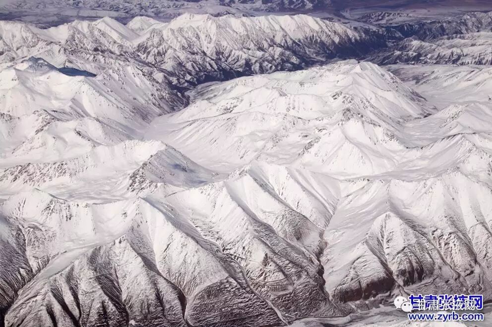 4月16日,航拍的山丹军马场至青海大通段的祁连山脉,沟壑纵横,银装素裹,雄浑壮美令人震撼。祁连山脉位于青海省与甘肃省交界,是我国西部主要山脉之一。近日受寒流影响,祁连山区普降大雪,山峦白雪皑皑。(记者 成林 摄)