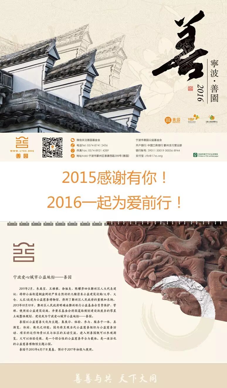 为了感谢大家对我们的支持,鄞州银行公益基金会、善园基金会面向粉丝,赠送基金会2016定制款台历哦!限量赠送,先到先得哦...