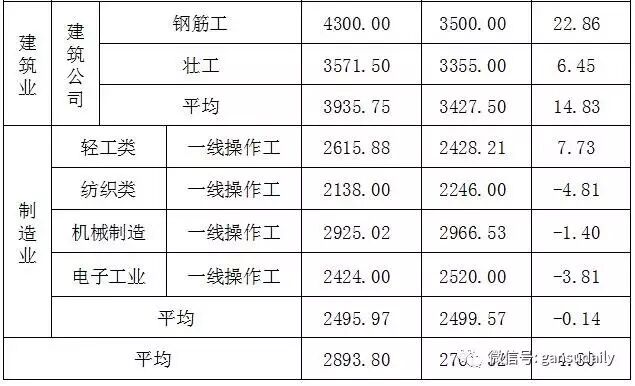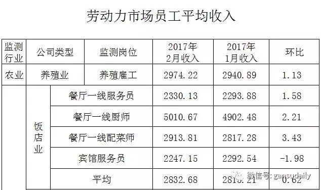 2月份,我省主要劳动力市场普通员工平均收入为2893.80元,比上月增长4.80%。其中,农业、服务业、建筑业、制造业普通员工平均收入分别为2974.22元、2426.45元、3935.75元、2495.97元。与上月相比,农业、建筑业员工平均收入分别上涨1.13%、14.83%;服务业、制造业员工平均收入下降 1.51%、0.14%。
