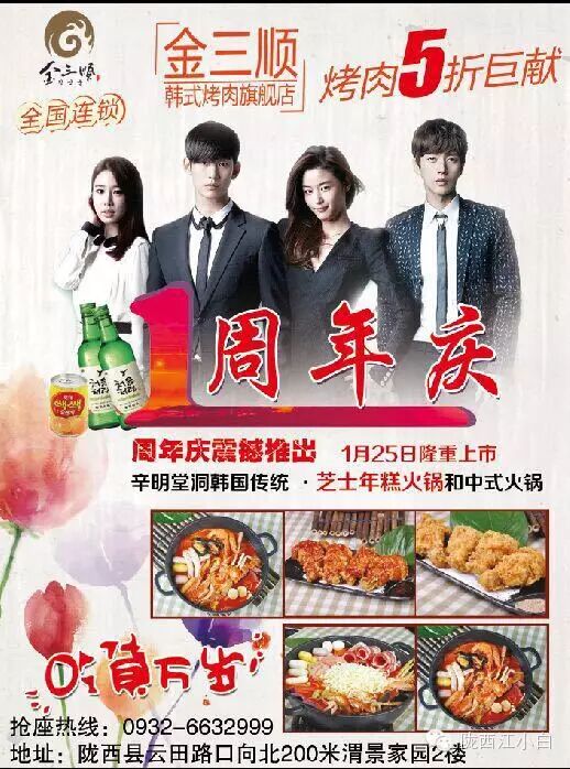 金三顺韩式烤肉(陇西)旗舰店是全国韩式烤肉料理连锁品牌“金三顺”旗下店面,是甘肃省第一家平价韩式烤肉料理平台,公司以“服务大众”品牌为发展核心,以“合作共赢、品质至上”作为企业核心经营理念,目前营业面积2000余平米,拥有员工100余人。主营:中韩烤肉、韩餐美食、中韩凉拌菜、韩国芝士年糕火锅、肌骨火锅、传统风味火锅、传统烧烤,其肉品采自齐齐哈尔天然牧场,配料不含任何添加剂,室内环境优雅,服务贴心细致,金三顺力争打造专为大众服务的最平价的韩国料理品牌。