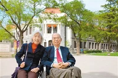 ▲赵家和先生和夫人吴嘉真在“清华学堂”前合影