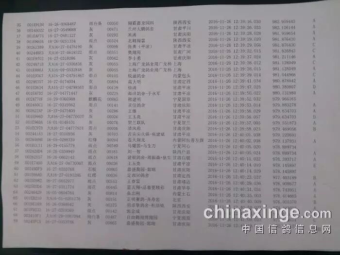 甘肃省平凉市崆峒区宇浩赛鸽公棚200公里热身赛于今日09:22:50在延安昊起开笼施放,上笼4474羽。从照片可见会员:海燕鸽舍的一羽灰色赛鸽16-29-0226630领先到达,归巢时间为10:17:38,分速3523.4672米/分。