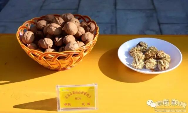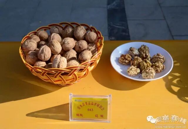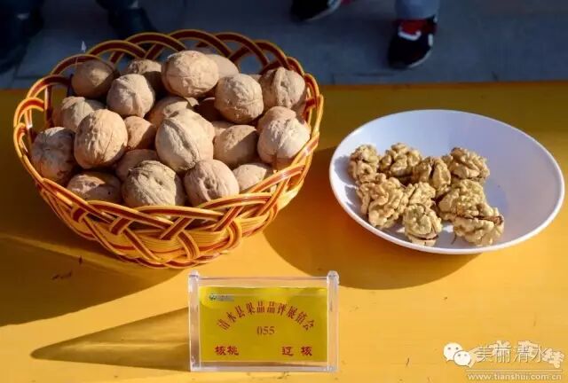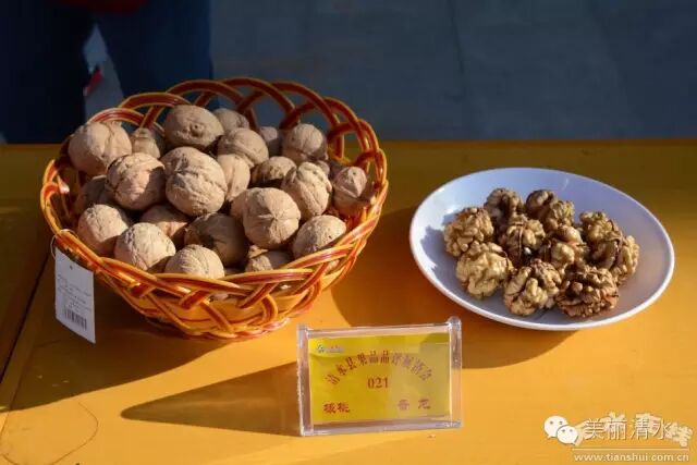 上午9时,果品品评展销会正式开始,展台上,一盘盘外形饱满、体硕形端、色泽鲜艳的清水薄皮核桃,吸引了专家的目光。本次活动涉全县12个核桃主产乡镇共收到选送样品37个,专家组根据参赛样品的果形、果色、果肉、可溶性固形物含量等内、外品质进行综合打分,然后按得分由高到低共评出6个奖项,其中“核桃大王”1名、“核桃王后”奖1名、“核桃王子”1名及优秀奖3名。经专家们公平、公正、公开严格的鉴评,最终评出“核桃大王”一名,由陇东乡庙湾村赵来财获得;“核桃王后”一名,由草川铺乡火石村申金斗获得;“核桃王子”1名,由永清镇江源合作社获得,由金集镇金果专业合作社、秦亭镇李岘村李强、山门镇玄头村黄建生分别获得优秀奖。
