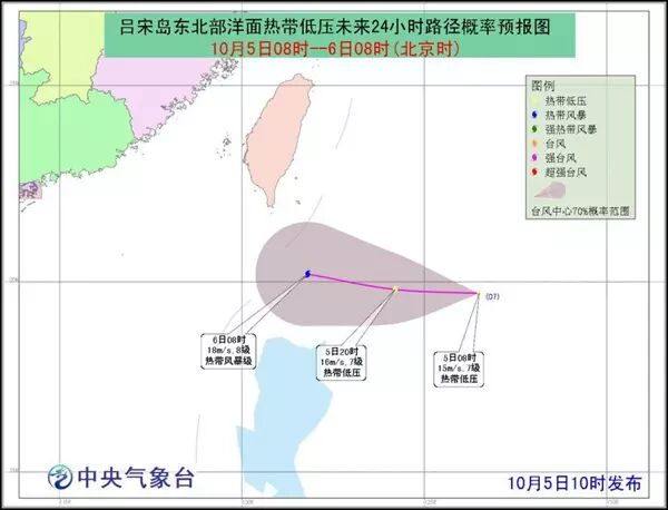 今天上午10时,中央气象台发布热带低压预报:菲律宾吕宋岛东北部洋面热带低压于今日上午8点钟生成。上午8点钟其中心位于香港以东大约1320公里的洋面上(北纬19.7度、东经126.5度)。中心最大风力7级,15 米/秒,1002 百帕。该热带低压将以每小时20公里左右的速度向偏西方向移动,强度逐渐增强↓↓