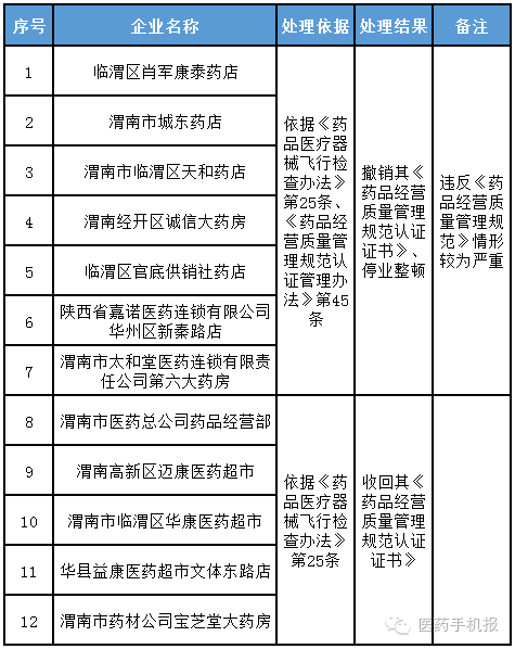 昨日(11月9日),甘肃省渭南市食品药品监督管理委员会发布《关于对临渭区肖军康泰药店等12家药品零售企业飞行检查情况的通告》。