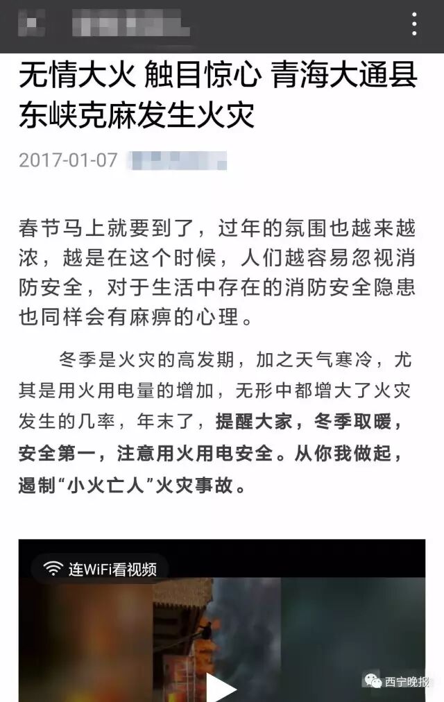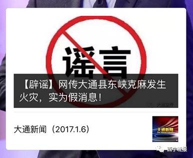 1月7日,我市大通县县委宣传部率先在微信公众平台发布辟谣文章称:经当地救援部门确定,大通县并无类似火灾发生。