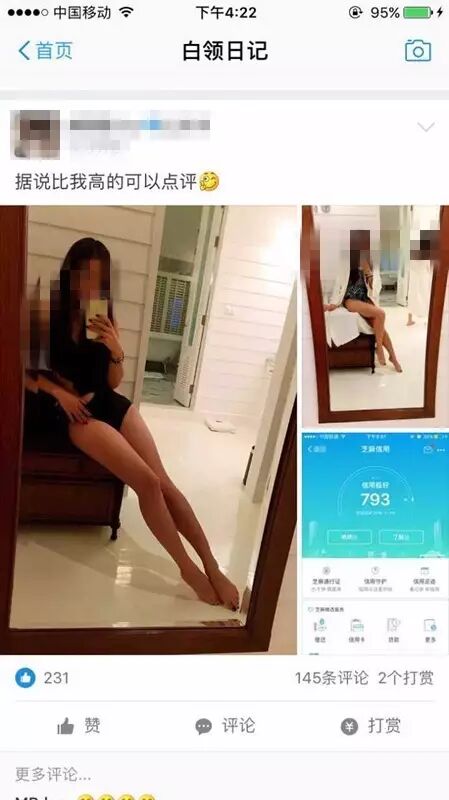 我们一条条地来分析一下,想给女大学生和女白领提交一个评论,你要提交多少材料才能提高芝麻分!