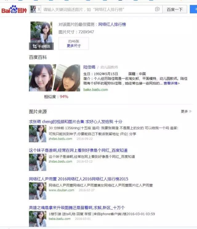 值得注意的是,让人欲罢不能的美照却被网友扒出有“水分”,可不只是美图秀秀和ps那么简单。网友搜索发现,多张在支付宝中打赏量很高的照片其实是盗图,通过百度识图或者搜狗识图搜索,能够搜到数条与照片相关的信息。