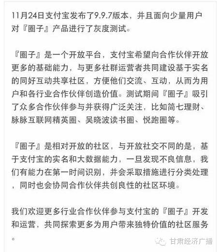 支付宝的“玩转圈子”功能,一口气推出了“白领日记”、“校园日记”、“海外代购”、“生活在海外”、“北京女人”等圈子,并通过大数据精准推送,向用户们发出了不同的圈子邀请。