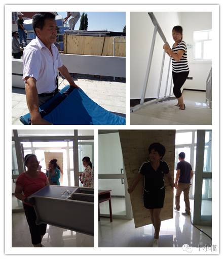 塔城市第十小学在新学期来临之际,由于时间紧,任务重。学校组织教职员工在8月27日中午将60套高低床搬运至教师周转房内,校长、书记携全体教师齐上阵,从太阳升起到艳阳高照,再到此时的暮色将近,就这么十来个人,从优雅的老师转换为搬运工,通过两个小时的紧张搬运,60套高低床都井然有序的摆放在宿舍内。从中可以看到,一个新建的学校该有多少幕后的付出,才有最后完美的外在体现呀!