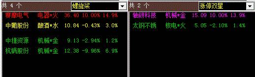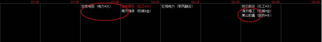 13:45的双胞胎走势是甘肃电投和南方轴承,14:45的双胞胎走势是海天精工和黄山胶囊,它们的走势都很相似。