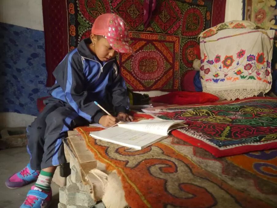 高崖子牧场学校位于乌鲁木齐市达坂城区阿克苏乡高崖子牧场,学校共有115人,少数民族学生占比100%,多为农牧民子女。这里的孩子都像胡尼杜孜一样,虽然条件艰苦,虽然生活困难,他们依然乐观、开朗、热爱读书,对世界抱着极大的期待和好奇。