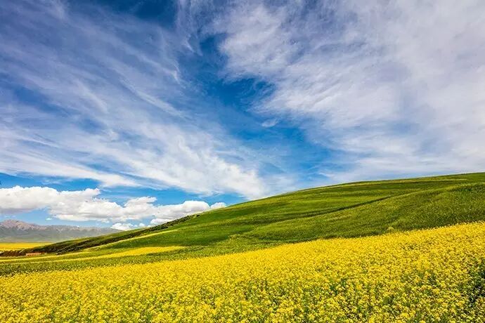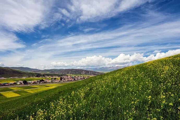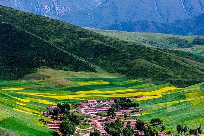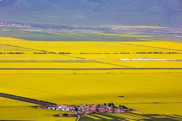 门源油菜花海位于青海省海北藏族自治州的门源县,是青海省及西北地区的主要油料产区,由此,这里的油菜花也成为了一种美丽而蔚为壮观的人造景观。另外,这里油菜花的种植范围是,它西起浩门河畔的青石嘴,东到大通河畔的玉隆滩,北到与甘肃省交界的冷龙岭,南至高峻的大坂山,绵延数十公里。夏日时节,走进青海门源回族自治县,恰如走进一幅浑然天成的油画。