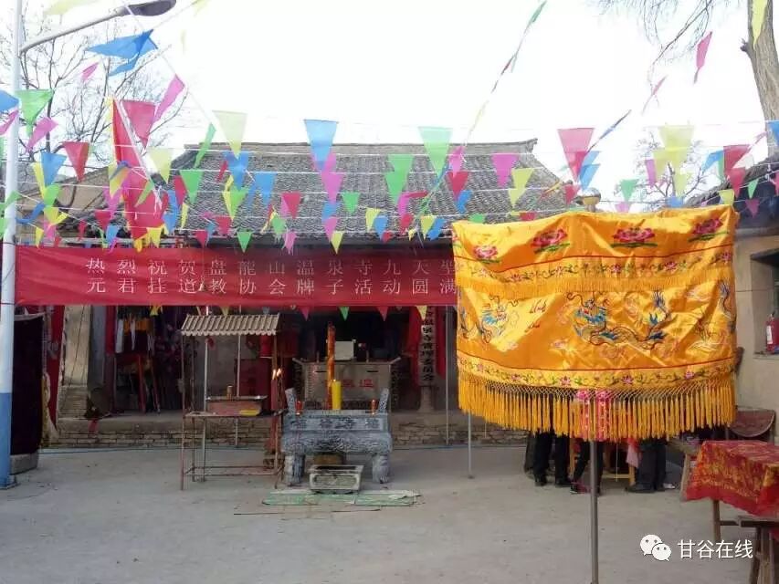 您们好!盘龙山温泉寺九天圣母五俊元君于2017【丁酉】年古历三月二十三日圣诞,为了感应尊神,有求必应,神恩浩荡,平吉平安,风调雨顺,国泰民安,盘龙山温泉寺管委会决定2017古历三月二十三日为盘龙山温泉寺九天圣母五后元君开光迎神和祝寿,甘谷县道教协会盘龙山温泉寺管理委员会诚信邀请广大信教群众,十方马路信心弟子,前来光临!