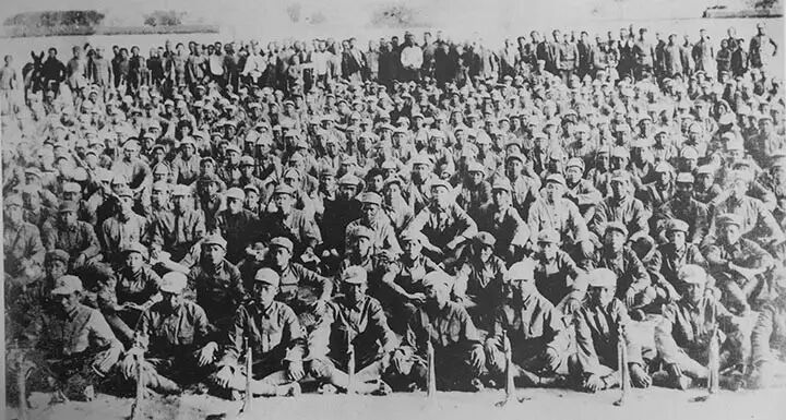 7/8 到陕北的红一、二、四方面军团以上干部在甘肃合影