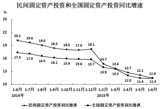 与2013年上半年相比,2015年上半年全国固定资产投资约上升了: