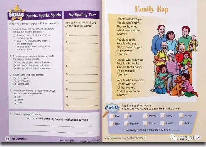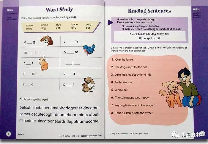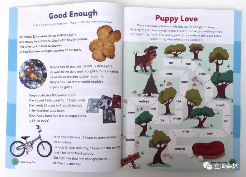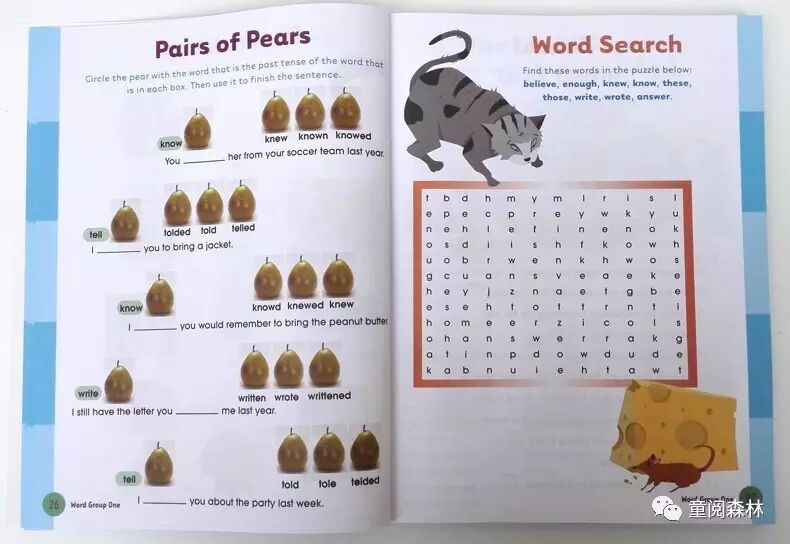 100words这套练习册里有句子填空,故事填空,字谜,小游戏,迷宫,对一些故事中的词语的语境也有小练习,猜词游戏,对于词的分类以及一些简单的排序也有涉及到,对于一些不规则动词的形式也有练习,涉及到100words的内容,帮助孩子们从各个方面去掌握它,譬如拼写、写作等等