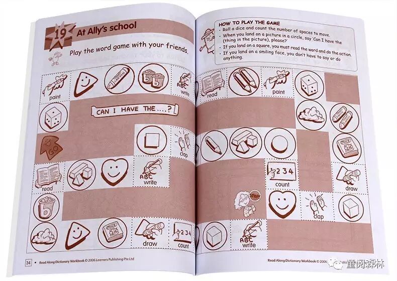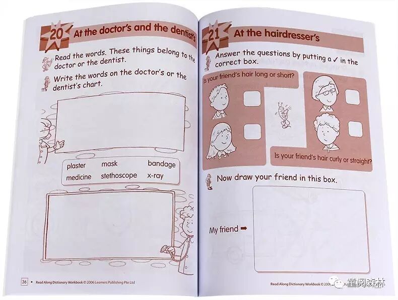 Read Along Dictionary 除了有2张发音纯正的CD外,还附带一本对应的练习册。练习册的内容和词典的主题对应,帮助小读者巩固所学的知识。