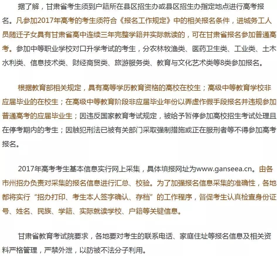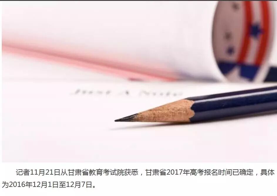 【招考】甘肃省2017年高考12月1日开始报名