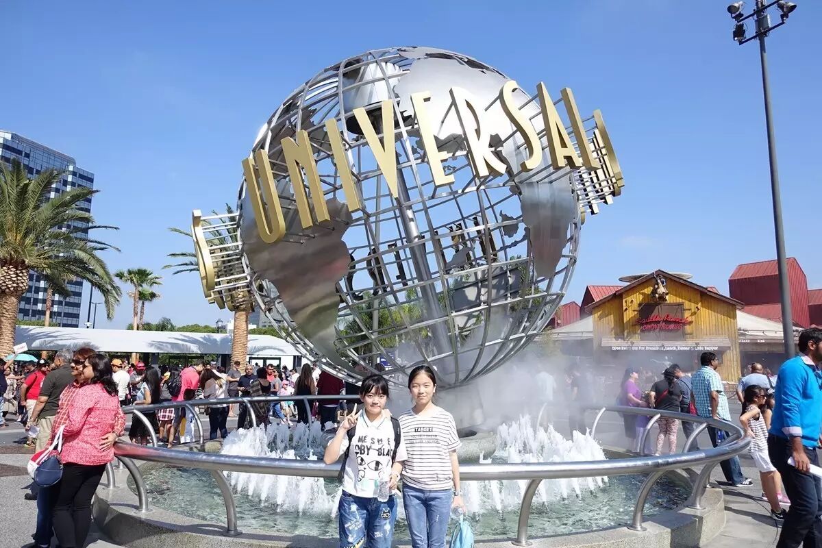 美国研学第一天,我们开启了好莱坞环球影城之旅。一到好莱坞环球中心门口,映入眼帘的便是一个偌大的地球模型。两旁还有一些样子是拍电影的铜人塑像。使人遐想到电影中的特效。