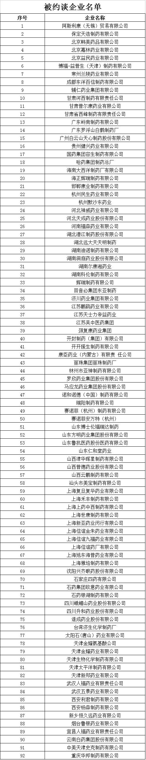 被约谈企业名单