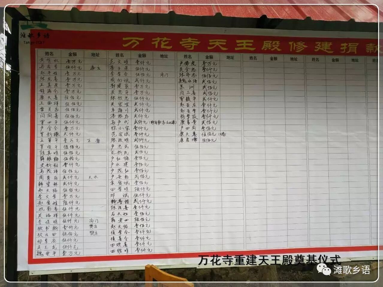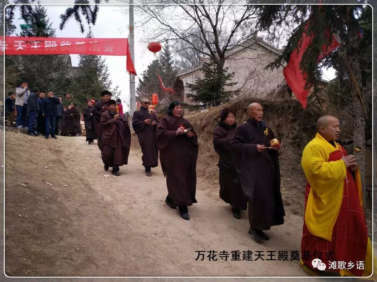 武山县滩歌镇千年古刹万花寺,在2017年农历二月十二日上午11点为社会各界人士祈福,重修天王殿奠基仪式,修建天王殿善款金额达80余万元,还望社会各界有志人士能伸出援手,种福田,大福报,延福惠于子孙后代。