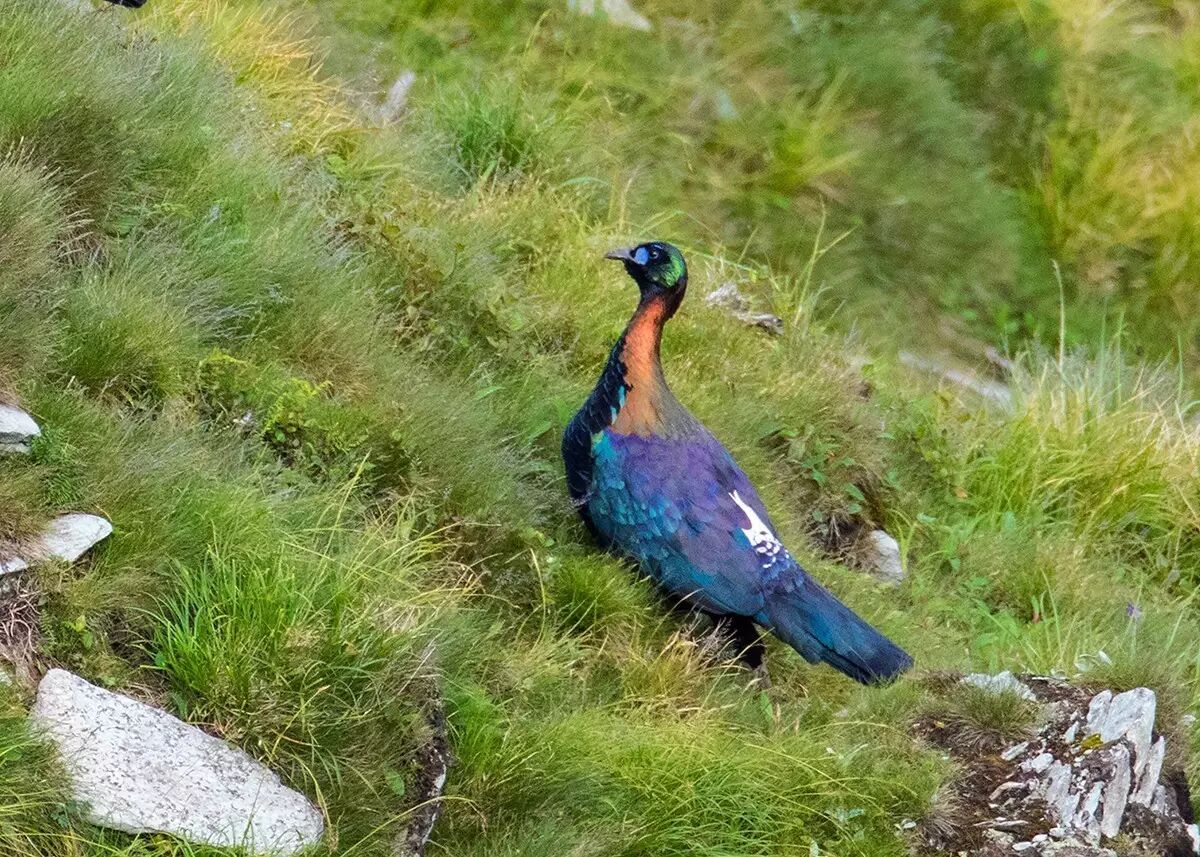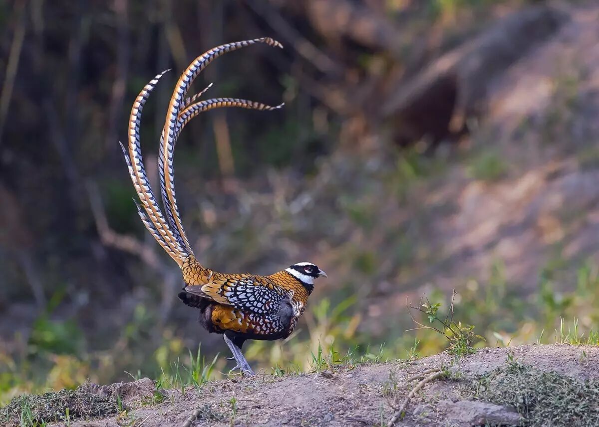 绿尾虹雉仅分布于中国青藏高原附近,被世界列为世界性易危物种。它常成对或小群活动,白天出没于山脊地带,晚上栖于稠密的灌丛间或树的低枝上。
