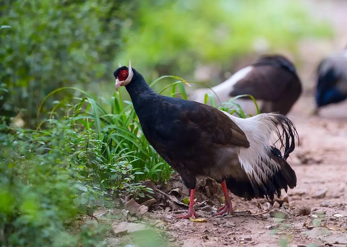 白颈长尾雉是国家一级保护动物,它多出入于森林茂密、地形复杂的崎岖山地和山谷间。性胆怯而机警,在发现异常情况时,先急跑几步再停下观察动静,如无危险,则悄悄走开或飞走;如发现敌害临近,则马上起飞,同时发出尖锐的叫声。