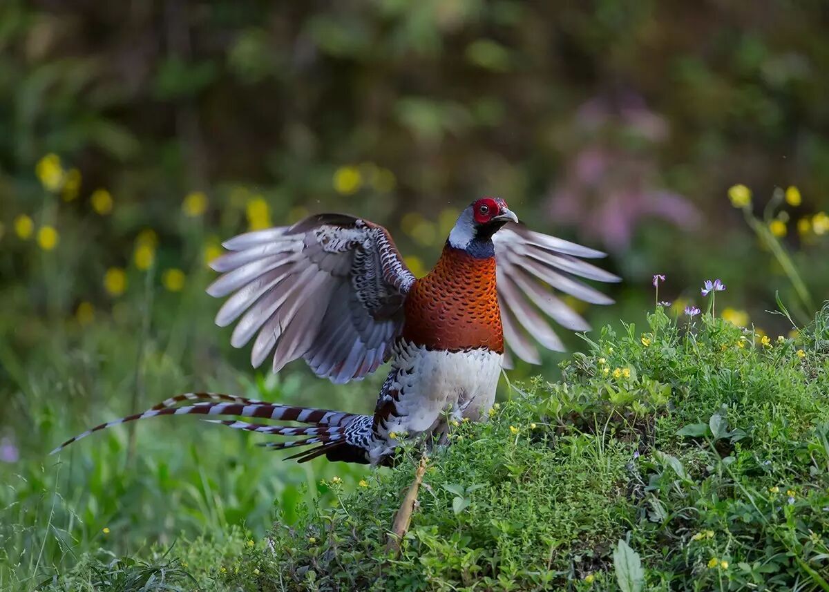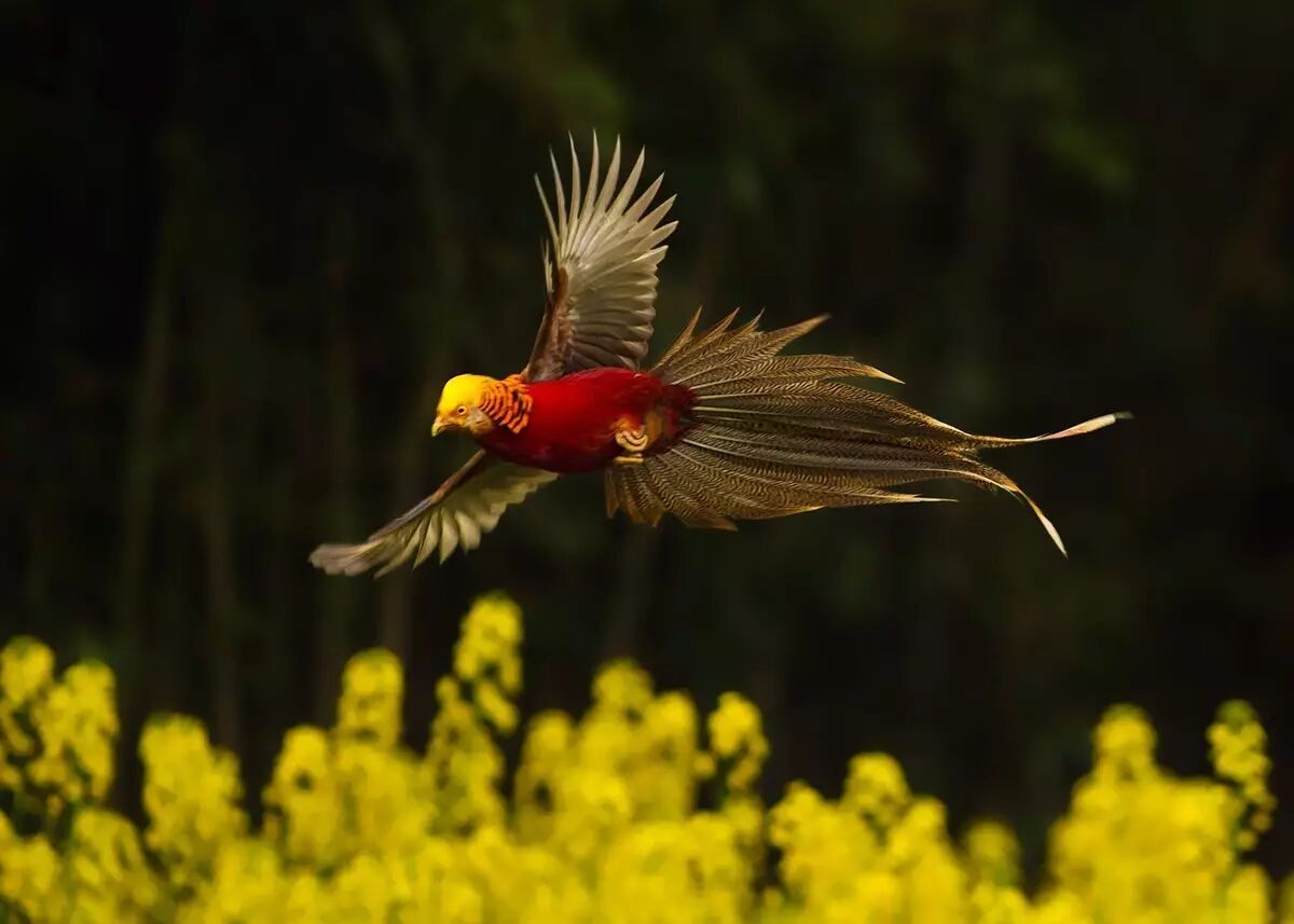 又名“金鸡”,核心分布区域为中国甘肃和陕西南部的秦岭地区。在野外,红腹锦鸡的特征极明显,全身羽毛颜色互相衬托,赤橙黄绿青蓝紫。