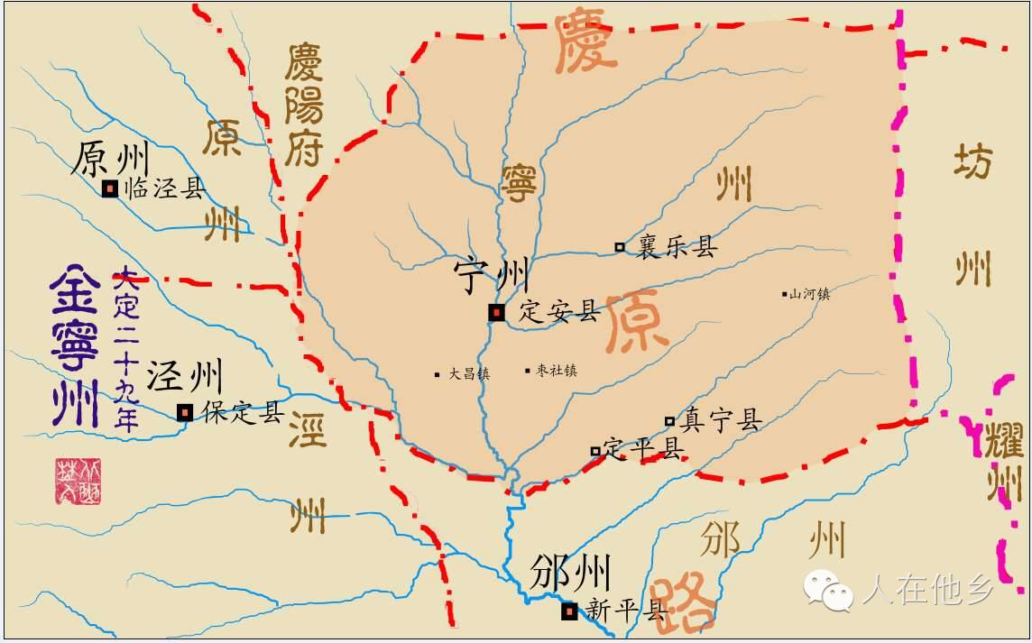 金宁州,大定二十九年。(金宁州包括襄乐县,真宁县,定安县)