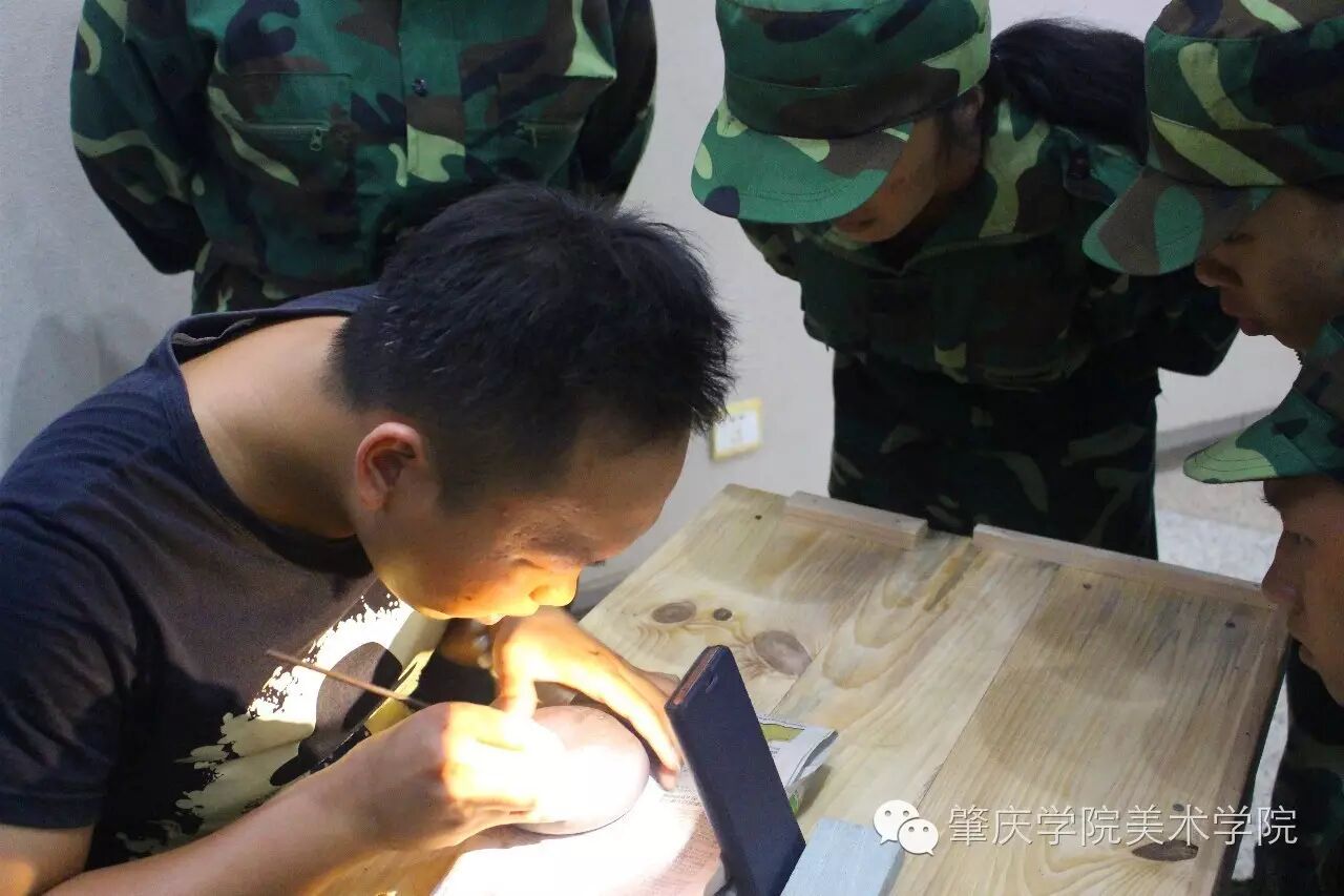 本次参观,来自全国大江南北的同学们乐在其中,既能在艰苦的军训过程中得以休息,又能在和师兄师姐的耐心讲解下增长见识,看到师兄师姐如此多优秀的端砚作品,也让小鲜肉们明白,高考结束,大学伊始,艺术创作之路才刚刚上路,任重道远。更让我们懂得,爱校感恩之心,当永存心间。