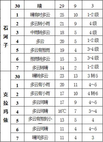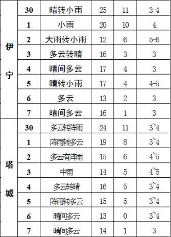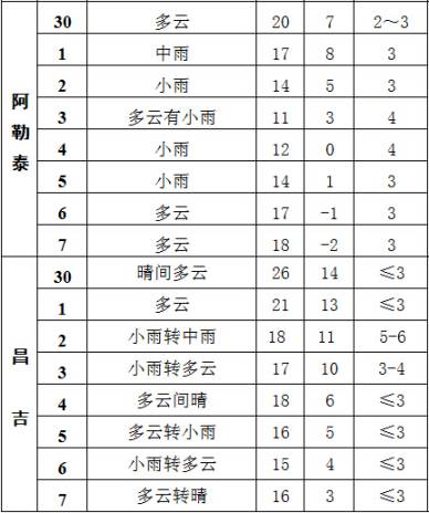 2号到3号夜间,北疆各地、天山山区、哈密、阿克苏北部、巴州、南疆西部山区等地先后有微到小雨,其中伊犁河谷、博州、塔城、北疆沿天山一带、天山山区等地的部分地区有中到大雨,局部有暴雨。全疆大部地区气温下降8度左右,天气转晴后,北疆北部的部分地区有不同程度的霜冻。