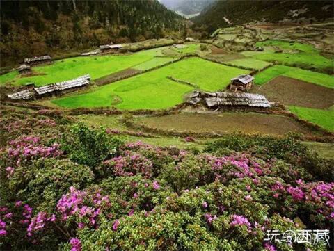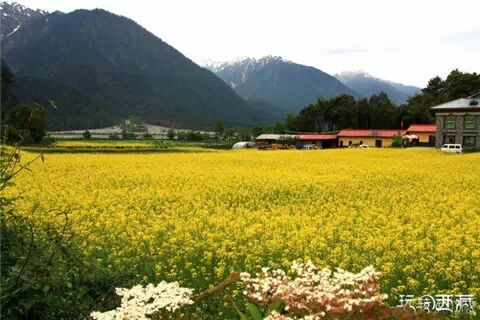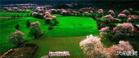 每年桃花盛开的季节,四周高耸的雪山包围着波密的小村庄,大片的桃花、油菜花、青稞把田野染得红、黄、绿一片。这种韵味独特的美,令人欣喜若狂。